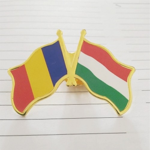 Insigna cu pin metalica 2 steaguri Romania si Ungaria