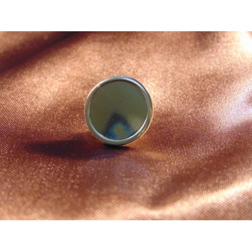 Insigna argintie,rotunda, metalica  de 17 mm , personalizabila in centru pe un diametru de 15mm cu autocolant sau eticheta cu rasina. Prinderea pe haina  se face cu ajutorul acului ce contine sistem antirotire si fluturasului de pe spate.Ambalarea este individuala in pungute ZIP.